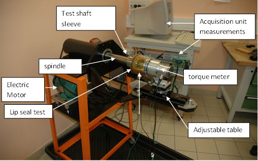 Rotary lip seal test bench: friction torque and temperature measurements