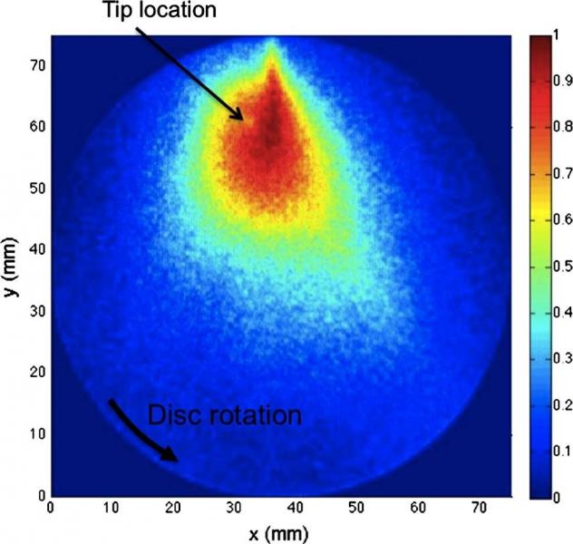 2D map of triboemitted electrons from a scratched AlO2 disc by a diamond tip in a high vacuum | Faraday waves observed in the water meniscus of a squeaking wiper blade |