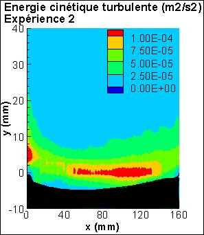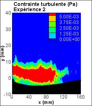 Erosion d’un sédiment modèle cohésif. Champs de vitesse moyenne, d’énergie cinétique turbulente, de contraintes laminaire et turbulente au-dessus d’un sédiment modèle cohésif.