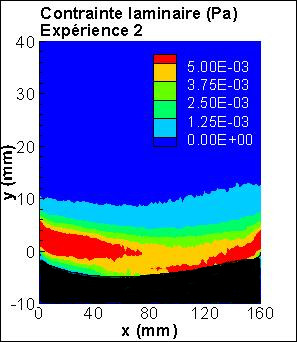 Nous avons développé des mesures couplées de vitesses (PIV) et de biréfringence locales permettant d’acquérir simultanément et localement les champs de vitesse et de contrainte. La loi rhéo-optique d’un matériau modèle (la laponite) a été déterminée, puis appliquée à l’étude de l’écoulement de ce matériau entre deux disques coaxiaux. Ce travail est mené en collaboration avec l’axe Photomécanique et Analyse Expérimentale en Mécanique des Solides (PEM) du Département Génie Mécanique et Systèmes Complexes. Il a débuté avec la thèse de Zied ZARROUK, soutenue en décembre 2010, et s’est poursuivi avec la thèse de Florence GIBOUIN soutenue en septembre 2015. Pour l’étude des écoulements à surface libre, nous avons mis en place des mesures couplées de vitesses surfaciques et d’épaisseurs de fluide permettant là encore d’estimer des gradients de vitesses locaux et des contraintes locales. La validation a été réalisée avec un écoulement de polyoxyde d’éthylène puis appliqué à des suspensions argileuses dans un canal incliné. Des expériences de rupture de barrage avec un gel viscoplastique à base de Carbopol ont ensuite été menées afin d’avoir accès à des informations locales dans l’épaisseur de fluide par mesures optiques.
