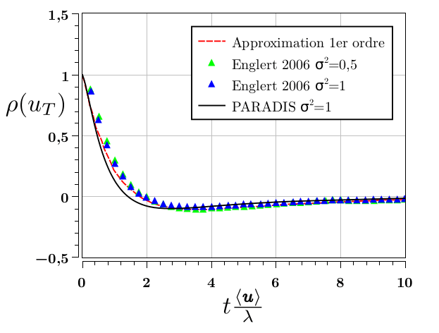 Fonction de corrélation de la composante transversale de la vitesse lagrangienne.