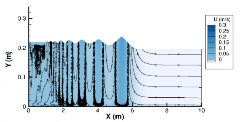Exemple de mascaret simulé par le logiciel OPENFOAM en utilisant une fermeture de porte.