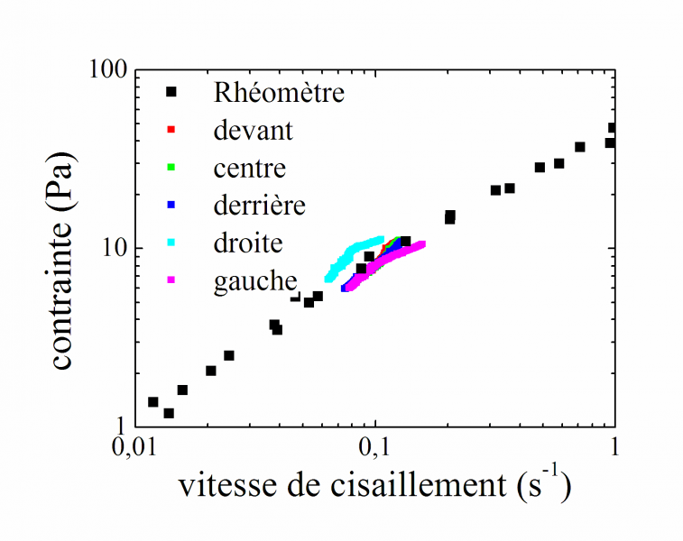Comparaison des rhéogrammes obtenus par rhéomètre et par analyse des données du plan incliné. |