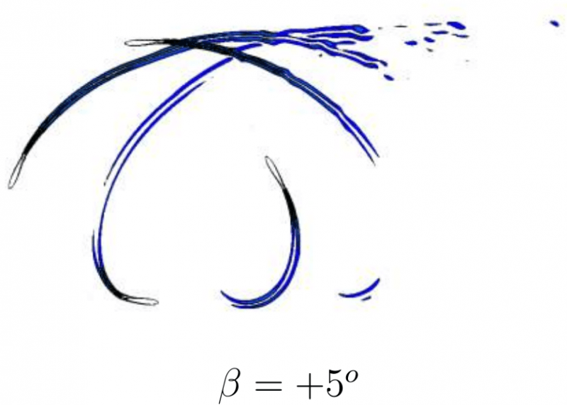 Le vol battu, inspiré du monde du vivant, est caractérisé par un mouvement périodique de battement et tangage de l’aile induisant une dynamique tourbillonnaire complexe, fortement non-linéaire, et instationnaire. Les structures tourbillonnaires générées dans le sillage d’un tel écoulement impliquent des modifications des champs de pression et vitesse environnants, influençant de cette manière la génération d’efforts sur le profil. L’objectif de ce travail initialement mené en collaboration avec Alain FARCY (axe ATAC) repose sur la compréhension du mode d’apparition et d’évolution des structures tourbillonnaires caractéristiques de tels écoulements, et de la génération d’efforts y étant associé. Des approches numérique et expérimentale sont mises en œuvre afin d’obtenir une caractérisation de l’écoulement généré autour de profils NACA 0012 en mouvement de vol battu (en translation dans l’axe orthogonal à leur envergure, ou en révolution autour de leur emplanture, couplé à une rotation autour de l’axe de l’envergure du profil) à un nombre de Reynolds 1000. Différentes cinématiques sont comparées pour obtenir la meilleure efficacité de sustentation. Après des études sur des profils rigides, les cinématiques de l’aile sont maintenant appliquées à des ailes plus ou moins souples, ce qui tend à modifier les interactions entre le fluide et l’aile. Ce programme a eu le soutien d’un programme Européen FP7 Nioplex (http://nioplex.eu/).