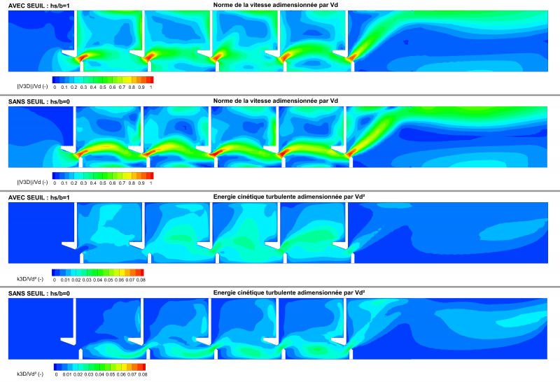 Comparaison des écoulements dans une passe à poisson avec et sans seuil.