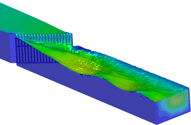Simulation RANS, tridimensionnelle et à surface libre de l’écoulement au travers une grille.