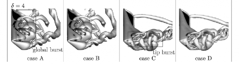 La modélisation et l’analyse des écoulements instationnaires reposent sur la bonne compréhension et une description fine des phénomènes physiques qu’ils mettent en jeu. La dynamique de ces écoulements est riche et met en jeu de nombreux degrés de liberté qu’il n’est pas toujours possible de mesurer ou de simuler. Une approche possible consiste à remplacer les équations de la mécanique des fluides par des systèmes dynamiques plus simples afin de diminuer la complexité des problèmes abordés et à coupler avec du filtrage de Kalman afin de tenir compte des observations. En particulier, ce type d’approche a la vertu de ne pas faire intervenir de paramètre d’ajustement artificiel tout en autorisant l’injection de données d’observations sans contrainte sur leur nature ou leur distribution temporelle. Ce travail a été mené dans le cadre de la thèse de Romain LEROUX et du projet Européen FP7/AFDAR.