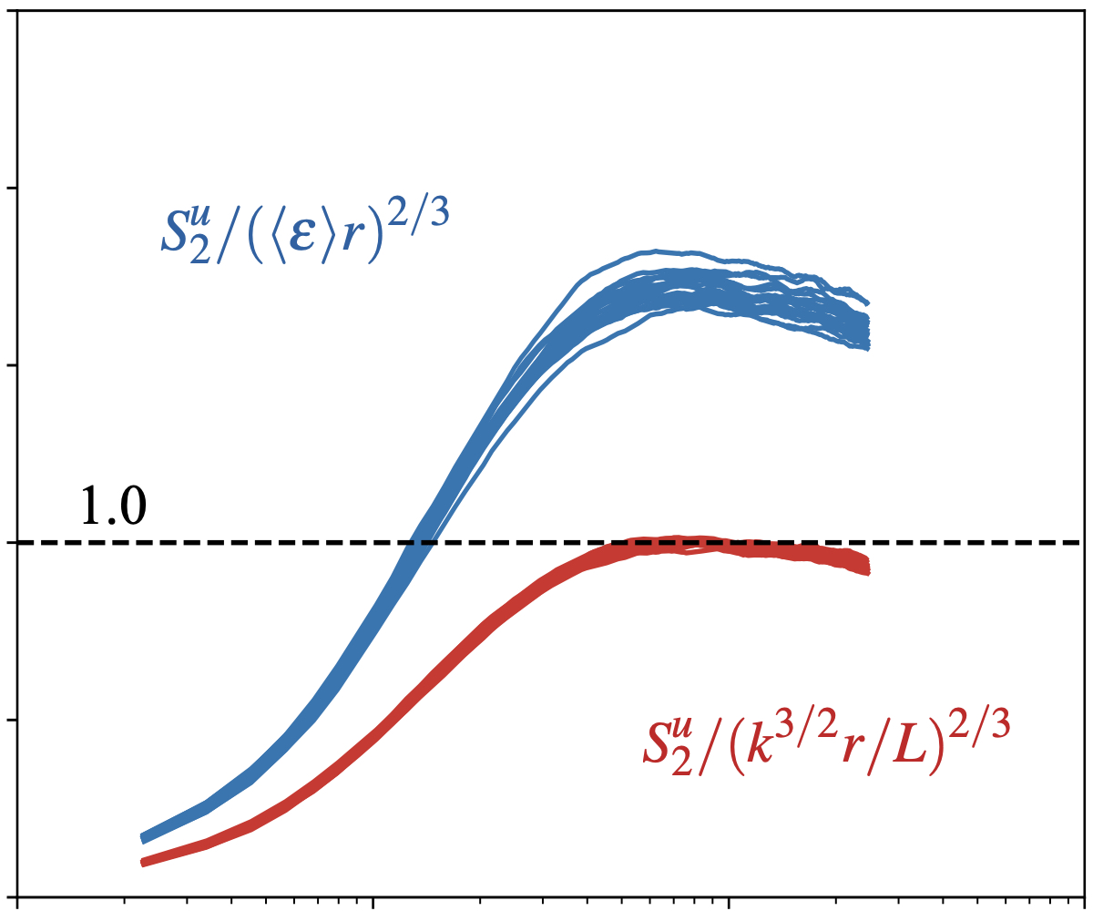 Abstract: A theory of non-homogeneous turbulence is developed and applied to boundary-free shear flows. The theory introduces assumptions of inner and outer similarity for the non-homogeneity of two-point statistics, and predicts power-law scalings of second-order structure functions that have some similarities with but also some differences from Kolmogorov scalings. These scalings arise as a consequence of these assumptions, of the general interscale and interspace energy balance, and of an inner–outer equivalence hypothesis for turbulence dissipation. They reduce to the usual Kolmogorov scalings in stationary homogeneous turbulence. Comparisons with structure function data from three qualitatively different turbulent wakes provide support for the theory’s predictions but also raise new questions for future research.