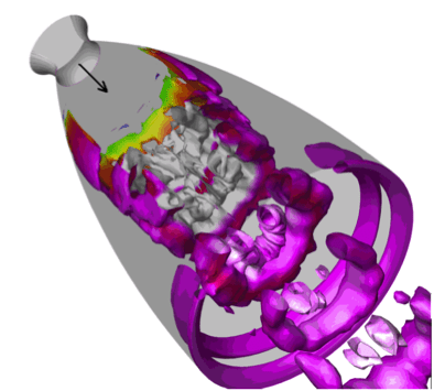 • combustion prémélangée ou non, éventuellement hétérogène, de la détonation et de ses applications, (iv) de la physique des transferts et de la physique appliquée aux phénomènes électriques dans les fluides.
