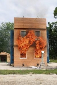 Les feux de façades (figure 3) fournissent un contexte et une motivation à ces travaux sur les interactions flamme-paroi (CSTB, FCBA, ANR FRENETICS). En effet, dans le cadre du développement durable, les façades des bâtiments deviennent de plus en plus sophistiquées, avec des constructions en bois, l'utilisation de matériaux biosourcés, des immeubles de moyenne et grande hauteur avec isolation par l’extérieur. Ceci augmente les risques de propagation du feu via la façade, dont l'estimation est un enjeu important sur les plan industriel et sociétal. Mais ce domaine n'est en rien limitatif, et par exemple, des actions du même ordre sont conduites concernant les feux de chemins de cables électrique en site industriel.