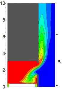 Il convient également de raffiner la modélisation des processus mécaniques, thermiques et radiatifs dans la phase gazeuse au voisinage d'une paroi, afin de décrire les interactions entre ces deux domaines qui conditionnent l’(auto)inflammation et la propagation du feu (lois de couplage, description des transferts). Une attention particulière est portée au couplage et à l’interaction des processus de transfert de masse et de chaleur. En effet, la simulation numérique des transferts aux interfaces flamme / paroi requiert une discrétisation spatiale et temporelle fine, inapplicable à échelle réelle. Le développement de lois de parois est donc nécessaire afin de les prendre en compte.