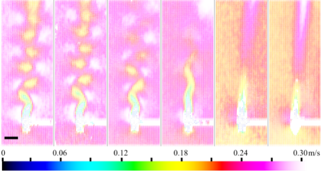 Le bruit émis par les propulseurs au décollage d’Ariane génère des vibrations intenses sur la coiffe du lanceur susceptibles d’endommager sa charge utile. Pour atténuer le rayonnement acoustique source émise par l’éjection de ces gaz supersoniques chauds, d’énormes quantités d’eau sont injectées sur le pas de tir. Dans ce cadre, des mesures expérimentales sont nécessaires pour comprendre l’influence de la présence de la phase liquide sur le rayonnement acoustique du jet supersonique chaud. La difficulté de telles mesures est précisément la nature diphasique eau / gaz de l’écoulement pour laquelle les métrologies classiques de type Vélocimétrie par Image de Particules (P.I.V.) ne sont pas applicables en l’état.