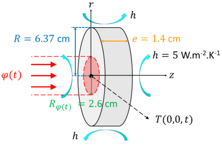 Le développement d’un modèle tridimensionnel (voir Figure 5) permet d’étudier l’influence d’une incertitude de positionnement du faisceau laser (et la forme de sa trace) au centre de l’échantillon.