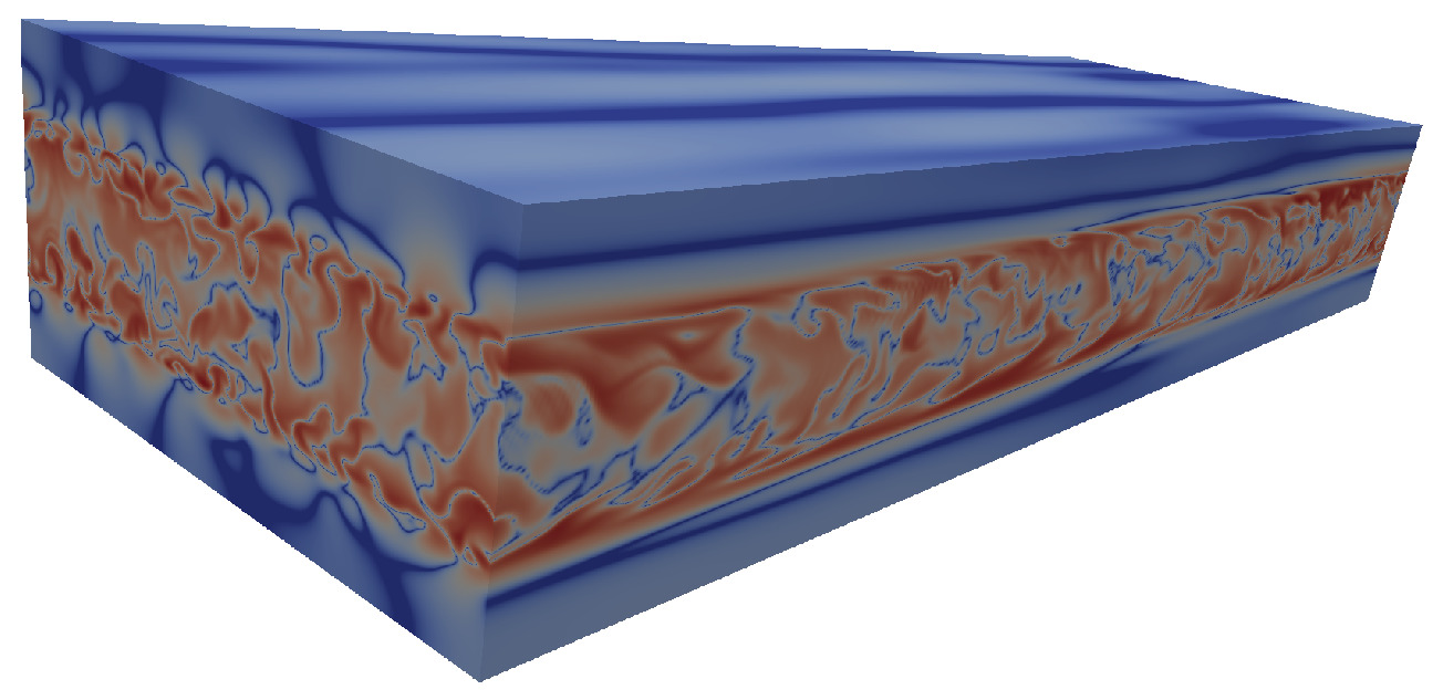 Les développements de modélisation sous-maille pour la LES implicite se font en collaboration avec Imperial College London en donnant lieu récemment à trois séjours de trois mois d'Eric Lamballais à Londres en tant que chercheur invité accueilli par Christos Vassilicos et Sylvain Laizet. L'originalité de l'approche proposée réside dans l'application et le calibrage de la régularisation de la solution. L'application est assurée par le calcul d'un terme visqueux stimulé artificiellement à petites échelles. Le calibrage est réalisé à partir d'une fermeture spectrale simplifiée de l'équation de Lin. Il en résulte une modélisation sous-maille originale, désignée par le terme viscosité spectrale implicite, dont la dissipation artificielle est guidée par un critère physique. La recherche actuellement poursuivie sur ce sujet vise à mieux maîtriser la sélectivité de la modélisation sur les échelles calculées explicitement en prenant notamment en considération les interactions triadiques distantes. L'ensemble de ces travaux a été présenté en conférences internationales en aboutissant à 7 publications référencées [1-7] dont en particulier l'article [2] dans Journal of Computational Physics qui est déjà cité plus de 40 fois malgré sa publication récente en 2017. Parmi les faits marquants de cette activité, on peut mentionner la première mise en évidence de la possibilité d'une modélisation de turbulence pariétale implicite qui dispense d'un raffinement de maillage au voisinage de la paroi [1,5,7], contrairement à l'idée communément admise que celui-ci est impératif.