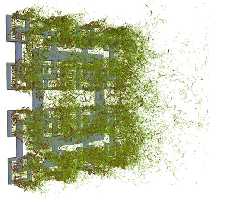 Cette activité de développement numérique se consacre au code de calcul open-source Incompact3d qui fédère une centaine d'utilisateurs à travers le monde. Ce code résout les équations de Navier-Stokes incompressibles sur un maillage Cartésien en combinant des schémas aux différences finies d'ordre élevé pour la différentiation spatiale avec une méthode de frontières immergées pour le traitement de géométries complexes dans le contexte de la simulation numérique directe (DNS en sigle anglo-saxon) et de la LES. L'Institut Pprime en est le fondateur et il développe aujourd'hui chaque nouvelle version en partenariat étroit avec Imperial College London, ainsi qu'avec deux universités Brésiliennes (PUCRS, UFRGS) et EDF R&D Chatou. La toute dernière version, rebaptisée Xcompact3d, est présentée dans l'article collectif [1].