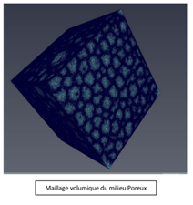 Dans certaines applications industrielles, il est parfois nécessaire de disposer de plusieurs modèles numériques permettant d’étudier l’hydrodynamique des écoulements à différentes échelles. C’est le cas de la lubrification XPHD (eX-Poro-HydroDynamique) utilisée dans les systèmes d’amortissement des arbres de transmission. La lubrification XPHD utilise une mousse synthétique remplie d’huile pour assurer l’amortissement. Deux modèles numériques permettant de simuler la réponse hydro-mécanique de ce nouveau système d’amortissement à des sollicitations normales et tangentielles sont nécessaires pour le dimensionner. A l’échelle des pores de la mousse, le premier modèle numérique simule l’écoulement de l’huile à travers un matériau poreux compressible. La difficulté réside dans la description complexe de la géométrie des pores de la mousse pour réaliser des simulations numériques. Pour remédier à cette difficulté, deux cas sont considérés. Dans le premier cas, la géométrie de pores de la mousse est reconstruite à différents niveaux de compression avec la microtomographie X-ray 3D. Le post-traitement des images tomographiques est effectué avec le logiciel AVIZO qui permet aussi de construire le maillage utilisable par le solveur simpleFoam d’OpenFOAM pour faire des simulations numériques. Ces simulations numériques permettront d’étudier l’impact de la déformation de la mousse sur les variations de pression. Cette analyse devrait permettre d’optimiser la géométrie des pores de la mousse. Une loi de distribution de la taille des pores pourra être identifiée. Dans le second cas, les simulations numériques sont réalisées dans une mousse virtuelle dont la géométrie des pores est construite avec l’algorithme de Voronoi et les logiciels solidworks - catia. Le maillage est réalisé avec l’outil snappyHexMesh d’OpenFOAM. A l’échelle de la mousse, un modèle numérique basé sur la théorie de poro-élasticité est développé pour étudier la réponse hydro-mécanique d’une mousse à des sollicitations normales et tangentielles. La difficulté porte sur le suivi des déformations de la mousse. Pour remédier à cette difficulté, une méthode SPH est utilisée pour résoudre le problème car elle utilise un maillage adaptatif. Pour réaliser les simulations numériques, un travail d’optimisation de la méthode SPH avec la parallélisation sous OpenMP (Open Multi-Processing) ou sous MPI (Message Passing Interface) ou sous CUDA (Compute Unified Device Architecture) est nécessaire. Tous ces développements seront réalisés dans la thèse d’Alaa Eddine Ennazii, recruté en Novembre 2021 sur le projet ANR SOFITT (2021-2025).