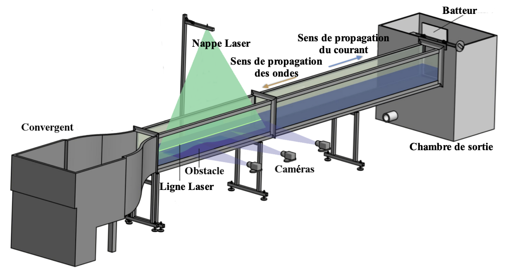 - Par ailleurs, dans le but de développer des systèmes autonomes permettant d’extraire de manière optimale l’énergie d’un écoulement incident, une étude expérimentale est réalisée couplant obstacles en oscillation et méthodes d’apprentissage automatique (Projet MAGGIE soutenue par la région Nouvelle Aquitaine).