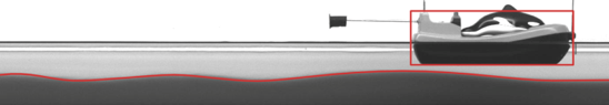 Un bateau se déplaçant dans un milieu stratifié en densité génère à l’interface entre les deux couches des ondes internes. Ces ondes interagissent avec le bateau, le freinant ou l’accélérant. Ces phénomènes, appelés effets d’eaux-mortes, peuvent être observés dans tous les fjord, mers et océans où se superposent des eaux de densité différentes, ou à l’entrée de certains ports et canaux. Au laboratoire, il est possible de reproduire de telles conditions dans des canaux de petites tailles afin d’y tracter des maquettes et d’observer cette dynamique particulière d’un bateau piégé dans un bicouche. La mise en place d’une méthode de détection de la déformée d’interface sous l’échelle du pixel (dite méthode subpixel) montre un comportement linéaire ou faiblement non-linéaire des ondes générées. En collaboration avec le Laboratoire de Mathématiques et Applications dans le cadre du GT PHYDROMAT, une classification mathématique de différentes ondes internes a conduit à la réalisation d’un code de calcul analytique permettant la reproduction de la dynamique du bateau ainsi que des ondes internes l’accompagnant. Ces calculs numériques, liés aux mesures expérimentales, mettent en évidence une dualité dans le phénomène d’eaux-mortes : un effet transitoire inédit à l’origine des oscillations de la vitesse du bateau, se superposant à l’effet classique stationnaire provoquant une résistance à l’avancement du bateau constante asymptotiquement [1]. Les expériences en laboratoire permettent d’étudier des structures internes plus complexes, qu’elles soient hydrauliques ou ondulatoires, dépassant le cadre de l’étude de la dynamique des navires.