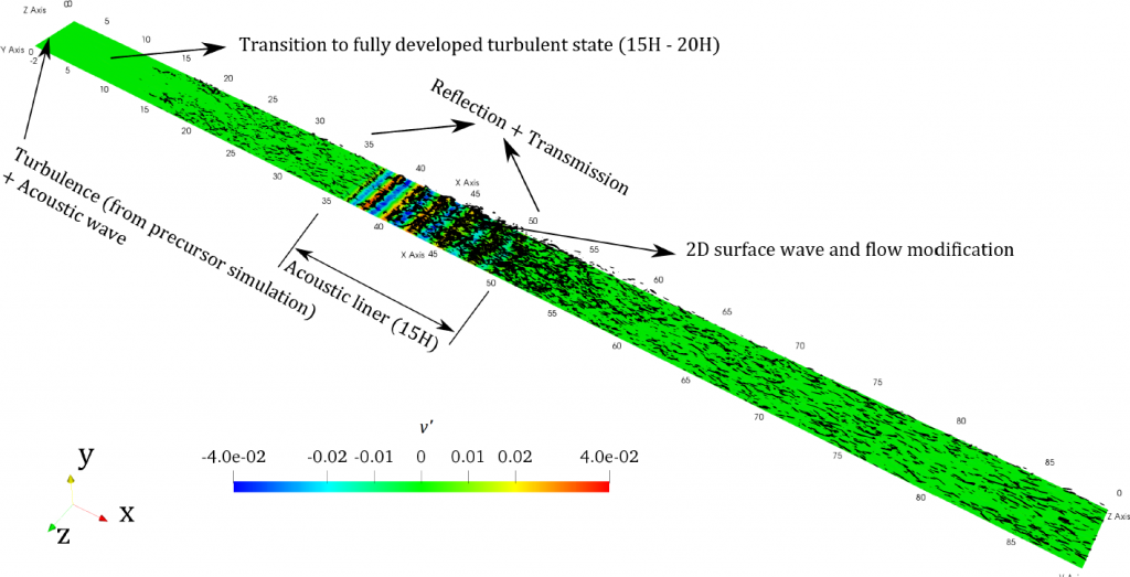 - R. Sebastian, D. Marx, and V. Fortuné, Numerical simulation of a turbulent channel flow with an acoustic liner, J. Sound Vib., 456, 306-330, 2019.