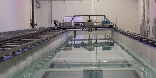 Le canal de traction facilite l’observation du sillage de maquettes tractées dans ou à la surface de l’eau. Les hublots permettent une utilisation aisée des moyens optiques pour la prise d’images ou la mesure de vitesses. Le rapport largeur sur profondeur d'eau peut être modifié afin d'atteindre des valeurs allant de 1 à 15. Ce canal permet ainsi de mener des analyses en milieu peu profond.