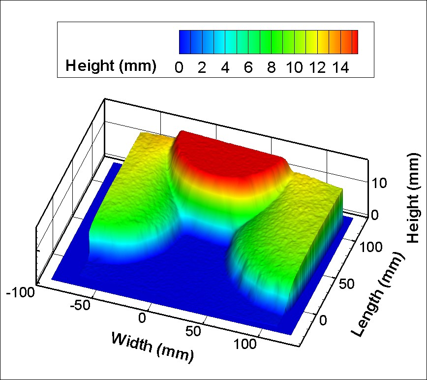 Le canal incliné permet de réaliser des expériences de rupture de barrage avec des fluides newtoniens ou non-newtoniens. L'utilisation de mesures optiques de surface et de vitesse permet de mieux appréhender l'établissement de la dynamique de l'écoulement dans ces conditions. C'est un outil de caractérisation des propriétés des fluides complexes et d'études d'écoulements naturels tels que les coulées de boue.