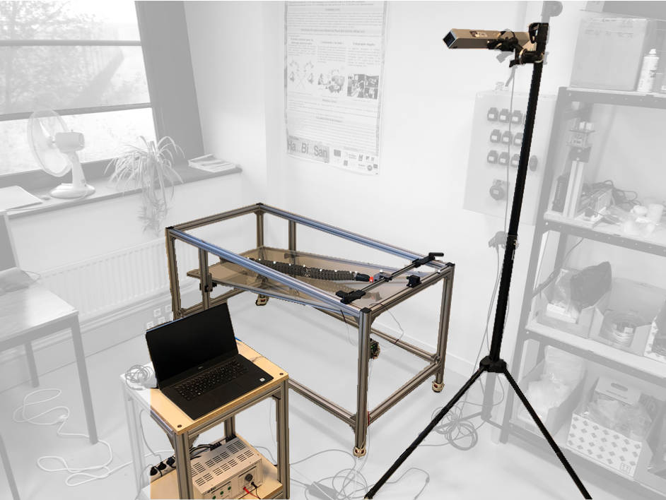 (2021 - en cours). Sujet de thèse : « Synthèse biomimétique pour la robotique bio-inspirée : application à la nage ondulatoire de serpent drone ». Direction : M. A. Laribi, X. Bonnet Étudier les serpents et prendre des mesures précises de leurs mouvements pour qualifier et quantifier l’efficacité énergétique de leur nage est une étape importante. Tester l’impact de modifications de paramètres cinématiques requiert une obéissance de leur part, ce qui est impossible. La solution envisagée est l’utilisation d’un drone serpent bio-inspiré, reproduisant la nage ondulatoire des serpents biologiques. Un tel robot relevant du biomimétisme est un outil développé par les roboticiens pour les biologistes s’insérant dans une boucle de rétroaction pour mettre à l’épreuve des hypothèses biologiques.Ainsi, mon projet doctoral vise à développer un système mécatronique complexe par biomimétisme reliant la cinématique ondulatoire aux performances et à l’efficacité de la nage des serpents. Il s’agit à la fois de contribuer à la constitution d’une vaste collection de cinématiques à l’aide d’enregistrements précis, et de développer une méthode biomimétique optimale permettant l’amélioration de la conception des drones plus économes en énergie. A long terme, ce projet doit permettre la collaboration entre les roboticiens et les industriels impliqués dans le développement de drones serpents bio-inspirés. Aussi, le biomimétisme pourra être intégré aux programmes d’enseignements supérieurs dans les années à venir en incluant l’importance grandissante des process et technologies de bio-inspiration.Cette thèse reposera sur trois grands objectifs. (1) Réaliser une étude cinématique de la nage volumique des serpents biologiques à travers une campagne de prises de mesures par capture de mouvements et par vidéos. (2) Développer la cinématique d’un module bio-inspiré et l’exploiter dans la réalisation d’un serpent bio-inspiré multi-modules. (3) Développer et intégrer la commande du robot en reproduisant les mécanismes de nages des serpents de manière fidèle et fiable pour les scientifiques.